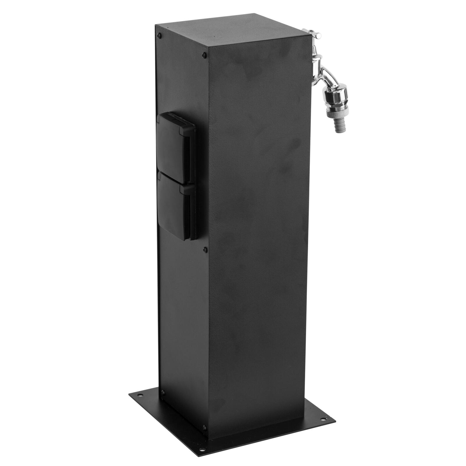 Connecterende zuil - Aansluitdoos met 2 stopcontacten en aftakkingsdoos voor dubbele dienstkraan - incl. watertoevoer