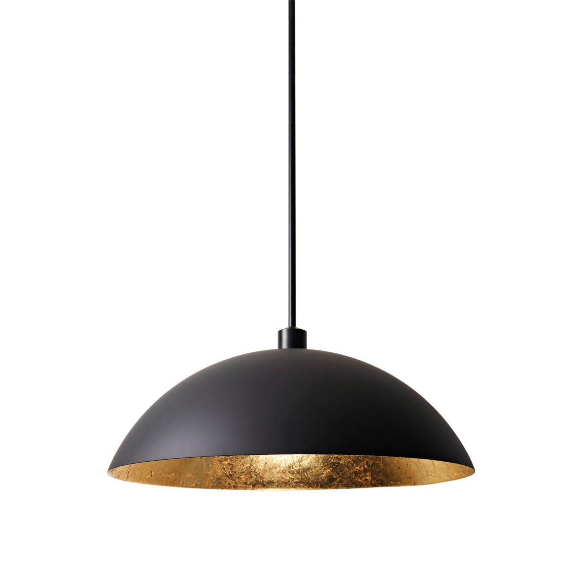 Hanglamp bolgewricht, inkortbaar - mat zwart buiten - papyrus bladgoud binnenin